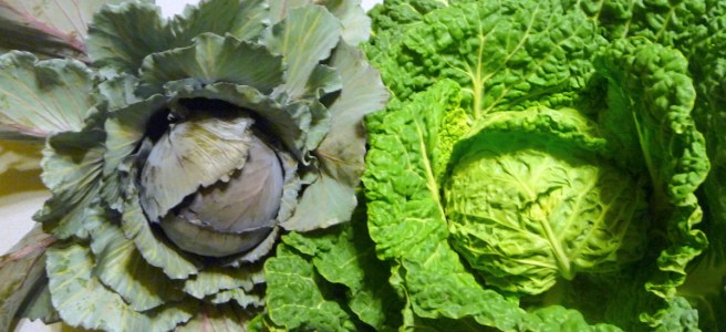 Recently I harvested two varieties of heirloom cabbage.